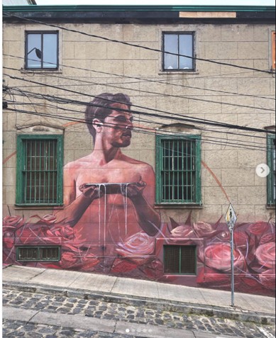 Juan Pablo Gatica (JP), Jardín de ofrendas, mural de grafiti, Valparaíso, Chile, 2022.